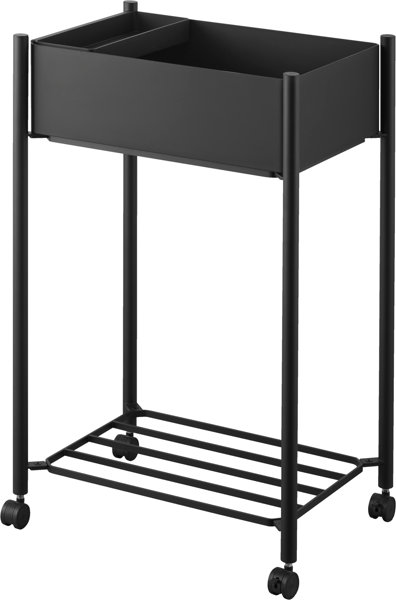 小物トレー付き下段が棚の収納ワゴン 2段 タワー ブラック